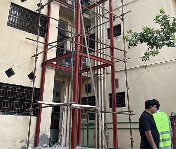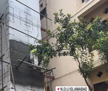 National Defence University (NDU), we designed and executed a dedicated lift structure using a hybrid system of SCIP (Structural Concrete Insulated Panels) and steel framework. The SCIP panels provided reduces overall weight, and the steel framing ensured structural strength, and seamless integration with the existing building. This combination offered a cost-effective and durable.